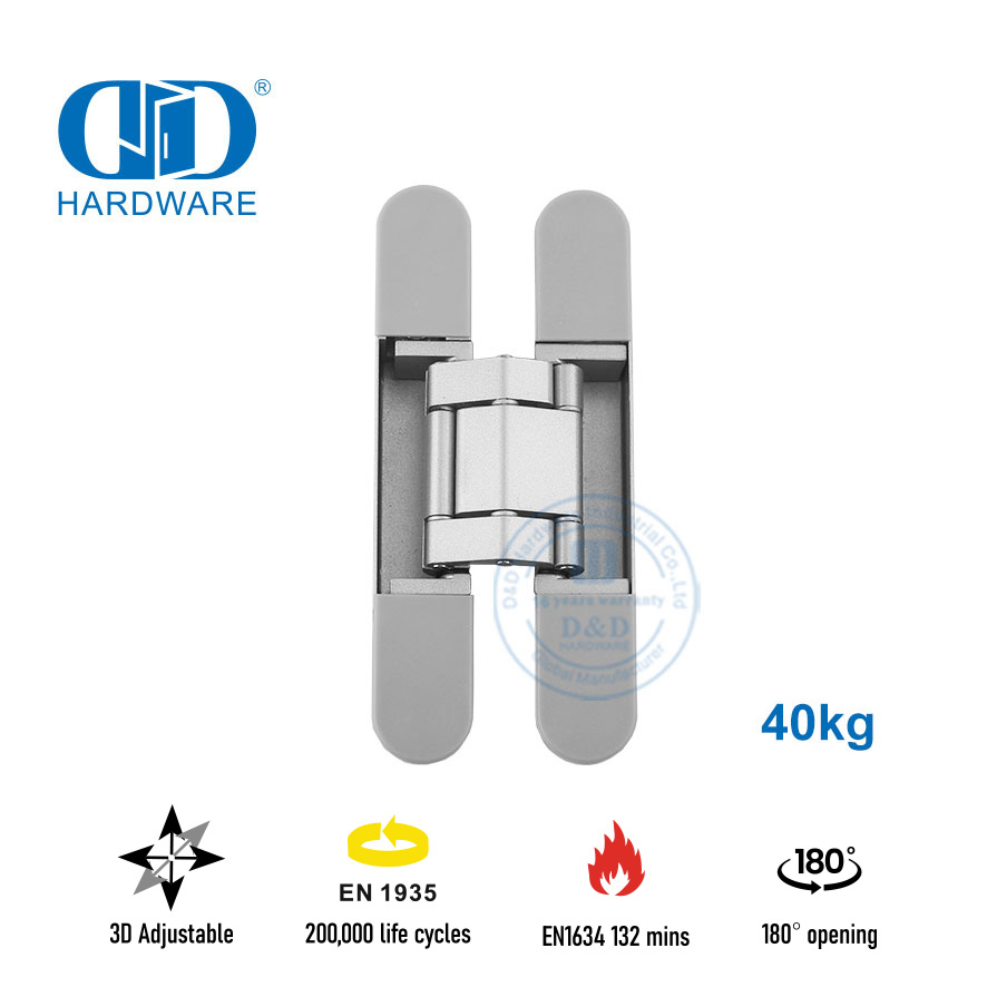 Die is spesifiek ontwerp vir moderne kantoorgeboue en 3D-onsigbare deurskarnier bied uitsonderlike dravermoë, verlengde dienslewe en veelvuldige veiligheidssertifisering, wat dit die ideale keuse maak vir hoë-end kommersiële ruimtedeurbeheerstelsels. Die kernparameters en funksionele voordele daarvan is soos volg: