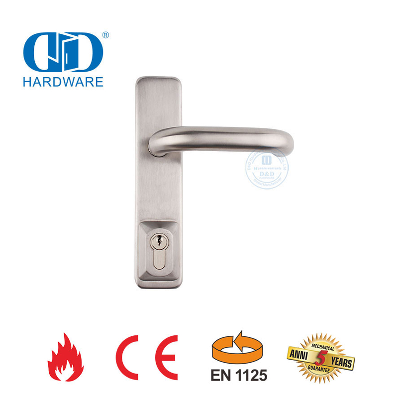 Panic Exit Hardeware word op buite-draaideure geïnstalleer om te verseker dat mense die deur kan oopmaak as hulle in 'n noodgeval daardeur moet uitgaan. Dit word algemeen in skole, mediese sentrums, industriële geboue, kantore en residensiële geboue gebruik. uitgang toestelle, die velling tipe en die vertikale tipe.Hulle is geskik vir enkel- of dubbeldeure.