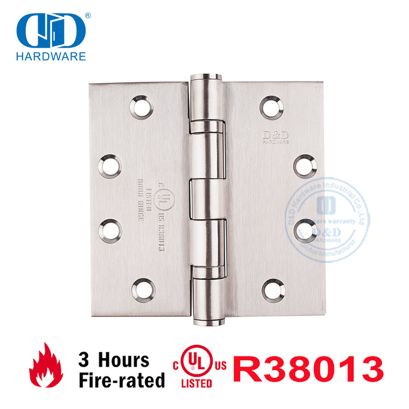 Regeringsgeboue moet aan die strengste boukodes en lewensveiligheidsregulasies voldoen. Vuurbestande skarniere, soos ons model DDSS002-FR, word getoets en gesertifiseer om deur-integriteit tydens 'n brand te handhaaf vir bepaalde duur (UL 10C brand gegradeer 3 uur, Lêer NO.R38013). Hierdie sertifisering verseker dat die hele deursamestelling aan wetlike vereistes vir besetting en openbare veiligheid voldoen.