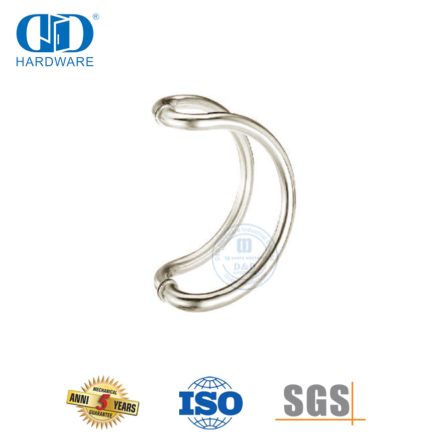 Vlekvrye staal Silwer D-tipe Rug-aan-rug-trekhandvatsel vir glas-hoofdeur-hardeware is 'n slanke en moderne toevoeging tot enige glasdeur. Hierdie handvatsel is gemaak van hoë kwaliteit vlekvrye staal, wat duursaamheid en lang lewe verseker. Sy silwer afwerking voeg 'n tikkie elegansie by die algehele voorkoms van die deur.
